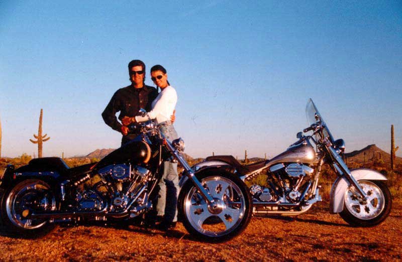 Pro Golfer, Danny Edwards and wife Dee Ann along side their pair of Steed Musclebike Motorcycles in the Sonoran Desert.
