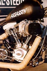 Beauty is in the eye of the beholder, and Ernie is really in love with this bike. He talks about it like it was one of his many children. Ernie is one of the nicest guys you'll ever meet. He's the president of the Phoenix chapter of the "Buffalo Solders", and he was just awarded, along with Hilliary Clinton, a 1998 Humanitarian Award. If you see Ernie out on the road on his "ASSASSIN" don't be scared, he just doesn't want to wash before he rides.