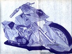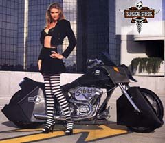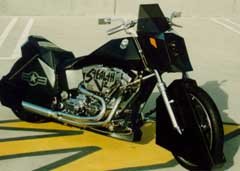 The bike was featured in "BIG-TWIN" magazine Spring '95 issue, and really helped put us on the map. All the big customizers at the time, Arlen Ness and Simms, were building big curvy bodybikes and I felt this would go against the grain of the status quo and get noticed. Most people either thought this was the ugliest bike they had ever seen, or one of the coolest. The point is that people remembered it!