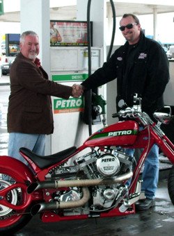 Petro VP Dave Latimer, circa 2005What's the big deal? Territorial pissing, that's what! That's right, one person's right to do whatever they want to their personal property to "Make it mine!" It became such a passion for me it's been my life's goal to somehow personalize everything that is "mine". I put spikes in the stripes in my Addis sneakers to make them look tougher. I painted a racing stripe on the walls in my bedroom. I bought an air brush kit and started spraying most all of my possessions that had a paintable surface. Even the family wheelbarrow ended up with hot-rod flames on it. I modified everything within my reach and my dad finally gave up. He never quite got it, but he figured it was just a phase I was going through. Many years later, miraculously, I've managed to create my dream job of building custom motorcycles every day. There are plenty of people who still don't get what or why we build them, but that's just fine with me.