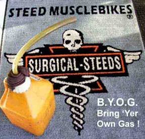 Here's another 'Fuel for Thought' that you might want to consider as a courtesy to your mechanic or service technician. The amount of fuel in your tank when you bring your bike in for work is a detail that often gets overlooked. It seems that a large percentage of bikes that we see coming into Steeds for service or custom work, arrive topped off with a full tank of gas. Please, when you take your bike to your mechanic, do yourself and your mechanic a favor, and bring it in with only a gallon or so of gas in the tank. Most maintenance services require removing the tank or cleaning the fuel valve filter, which means that we're constantly draining and handling fuel. At the same time, if you arrive on reserve gas, let us know, so when we're out on a test ride we don't end up cursing while we're pushing your bike back to the shop. Also, if you overfill your tanks, the gas may pass around the seal of your fuel cap and damage or blister your spendy custom paint job.